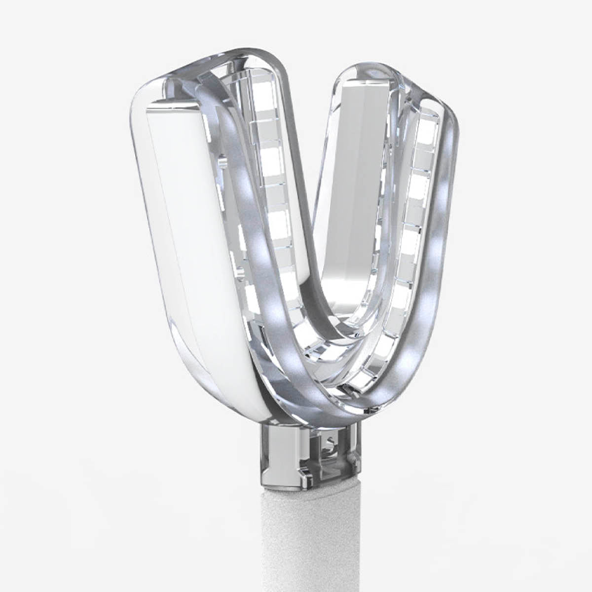 Inde i mundstykket er der installeret 48 specialfremstillede LED-lyskilder med nøje udvalgte bølgelængder. Den dobbeltsidede placering af LED'erne på det krummede metalhus sikrer, at lyset effektivt rettes mod de ønskede områder.