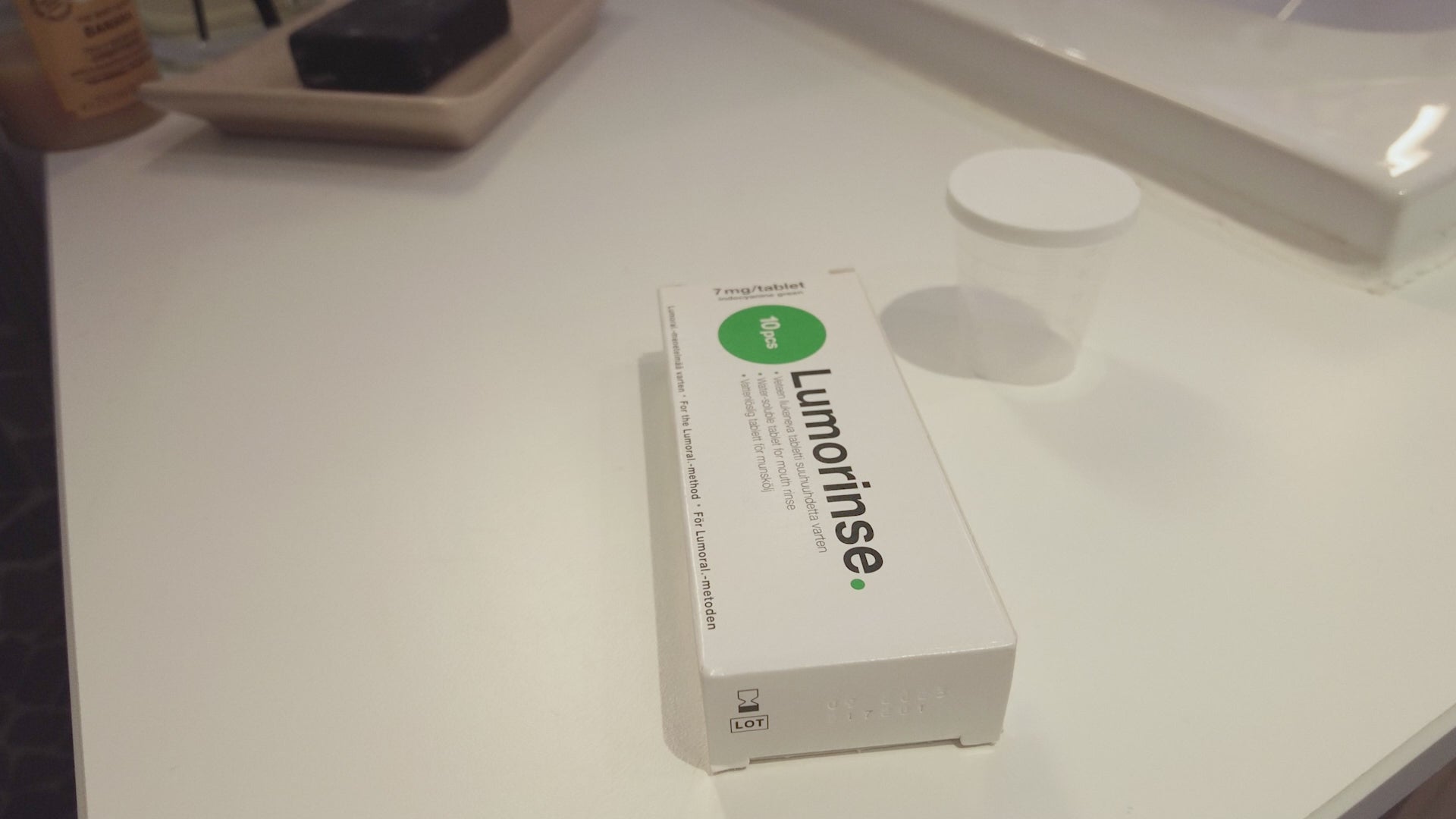 Lumorinse er en mildt smagende mundskyl fremstillet af en vandopløselig tablet, som er første trin i Lumoral behandlingen.